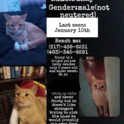 Lost Cat, Alert #67119 Vulcan missing near brookville rd and arlington ave, irvington46219