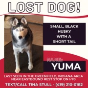 Lost Dog, Alert #87527 Yuma missing near I-70 Greenfield rest area eastbound, Near Greenfield Indiana rest area eastbound I-70.43338
